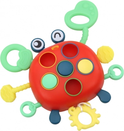 Chaque patte de crabe est recouverte de bosses qui servent de superbes anneaux de dentition. Il répond aux besoins d'exploration de l'enfant et offre également la possibilité de découvrir de nouvelles formes et couleurs.