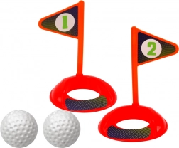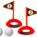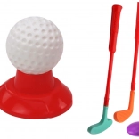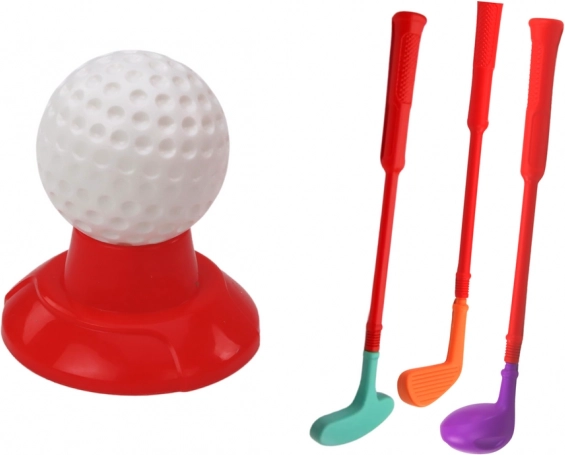 Trois différents clubs avec têtes colorées permettent une diversité de jeu et une adaptation aux compétences de l'enfant. Deux trous et deux drapeaux font également partie de l'ensemble pour un parcours de golf réaliste.