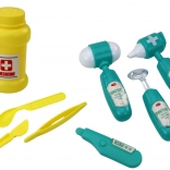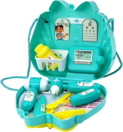 En ouvrant le sac, les enfants découvrent toute une gamme d’instruments médicaux qui stimulent leur imagination et encouragent le jeu créatif. L’ensemble comprend un thermomètre, un otoscope et une boîte à comprimés, permettant aux petits médecins d’assurer des soins complets à leurs patients.