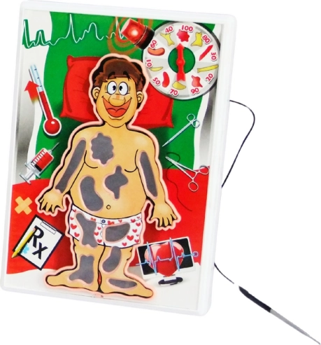 Vous gagnez des points pour chaque organe retiré correctement, mais les erreurs peuvent interrompre l’opération et passer la main au joueur suivant. Gagne celui qui obtient le plus de points pour les organes retirés, ou celui qui totalise le plus de points après addition des valeurs des différentes parties du corps.