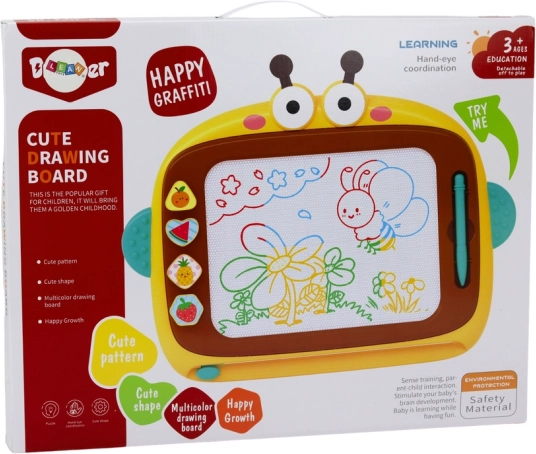 Découvrez un jouet ludique et éducatif pour enfants – une tablette magnétique rose avec effacement, offrant le dessin en 4 couleurs et 4 tampons de formes. Grâce à l’effacement facile par curseur, les enfants peuvent créer encore et encore, développer leur motricité fine, leur créativité et apprendre en s’amusant.
