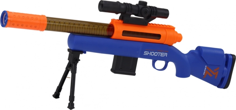 Nous avons conçu le fusil en privilégiant la précision et le confort. Équipé d’une lunette servant de viseur, il permet des tirs précis et l’atteinte de la cible. Le support offre en outre un appui stable pendant le tir, ce qui augmente la précision et le confort de jeu.