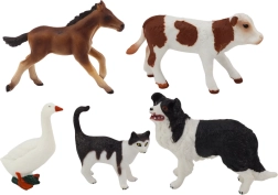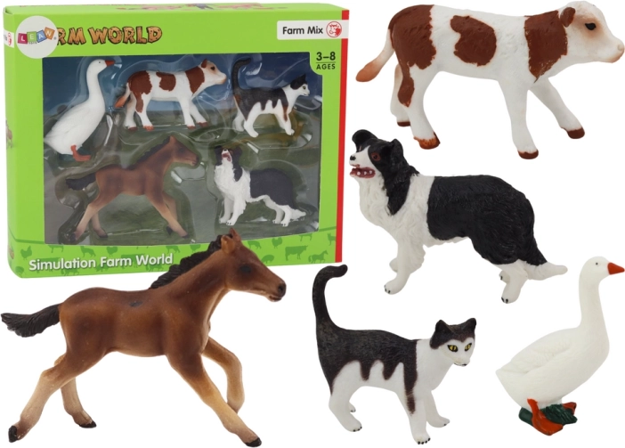 Ensemble de figurines d’animaux de la ferme 5 pièces Cheval Vache Chat Oie Chien