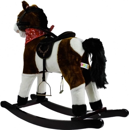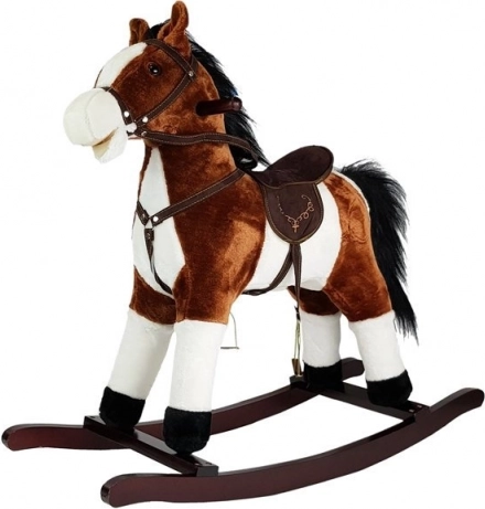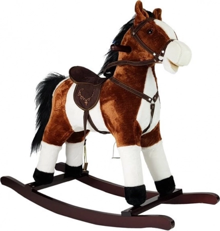 Notre cheval à bascule brun foncé est fabriqué en peluche douce pour un confort optimal pendant de longues séances de jeu. Le cheval est équipé de sons réalistes qui s’activent en appuyant sur son oreille, recréant l’ambiance du Far West avec des hennissements et des bruits de galop.