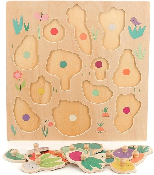 Vilac puzzle Légumes avec poignées est un jouet idéal pour les enfants, qui allie amusement et apprentissage. Grâce aux poignées en bois, ils manipulent facilement toutes les pièces et développent leur motricité fine ainsi que leurs compétences cognitives.