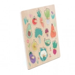 - 12 pièces colorées en bois représentant des légumes comme l'avocat, la tomate, la carotte et bien d'autres
