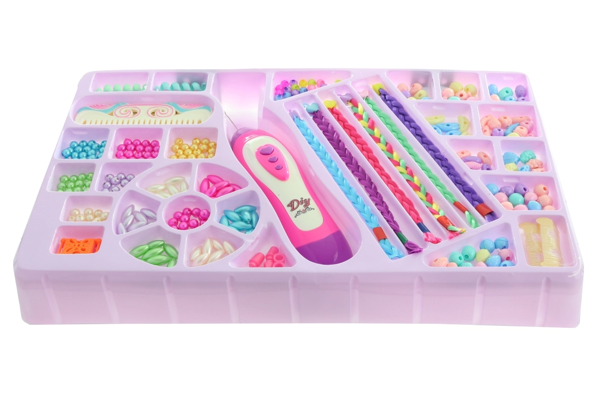 Grand coffret pour petites stylistes qui stimule l’imagination et la motricité fine. Grâce à la tresseuse pratique et au riche assortiment d’accessoires colorés, les enfants créent facilement des coiffures originales ornées de perles et de spirales. Tout est rangé dans une boîte claire, ce qui facilite le stockage et le transport.