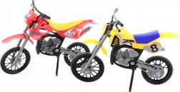 Les motos ont des roues à rotation libre, des béquilles pour un stationnement stable et des décorations de course attrayantes. L’assortiment de couleurs est livré selon la disponibilité en stock, faisant de chaque pack une surprise. Le blister pratique est idéal comme cadeau.