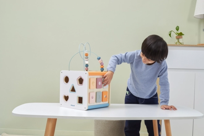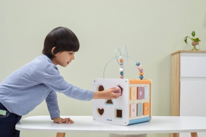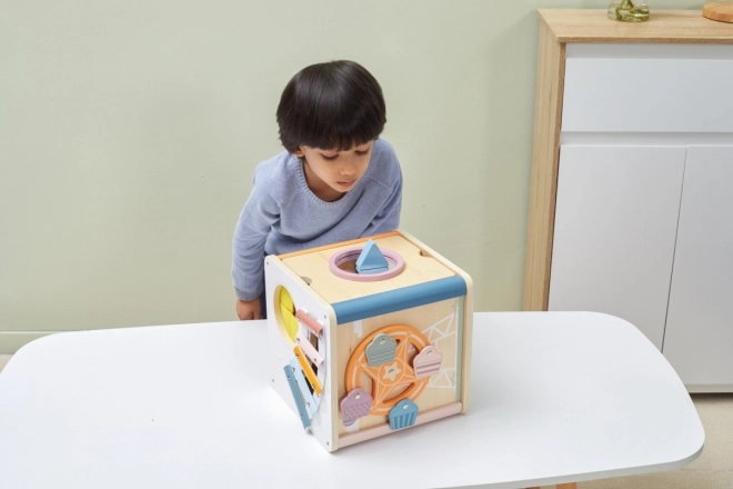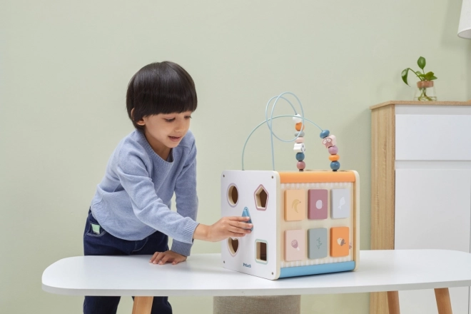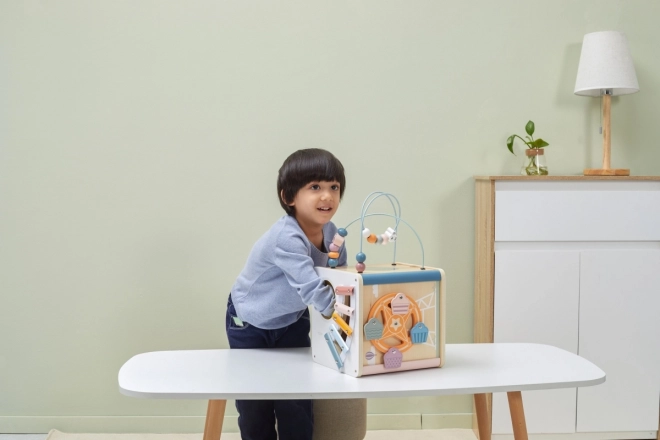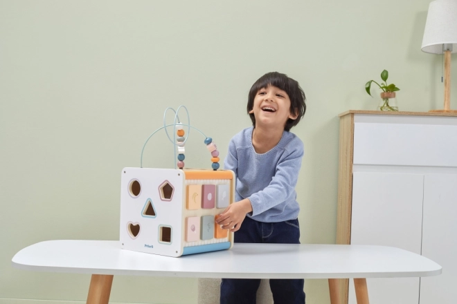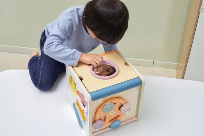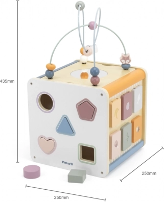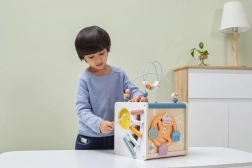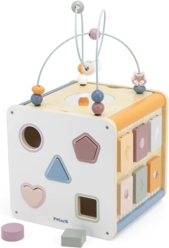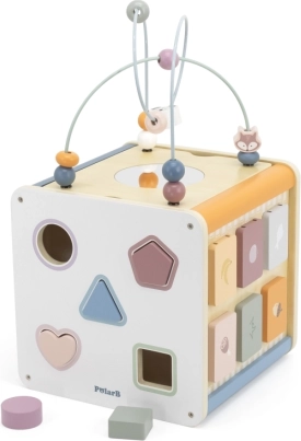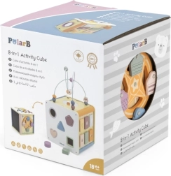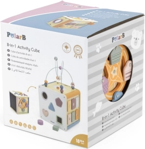 Viga PolarB Cube éducatif 8-en-1 propose huit activités différentes qui répondent à divers aspects du développement de l’enfant. Le jouet comprend :