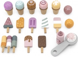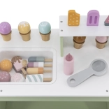 Le stand comprend différents types de crèmes glacées en bois, permettant aux enfants de créer leurs propres combinaisons de crème glacée.