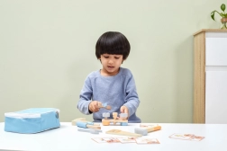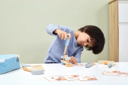 Ce set d’outils en bois développe les compétences motrices et la coordination œil-main chez les enfants.