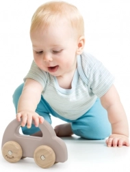 La voiture en bois à pousser est un jouet parfait pour les enfants dès six mois. Grâce à son design épuré et à ses couleurs pastel agréables, elle est facile à saisir par les petites mains. Les roues de la voiture sont silencieuses et assurent un mouvement fluide pendant le jeu. La voiture est sûre grâce à ses bords arrondis et elle est peinte avec des peintures non toxiques.