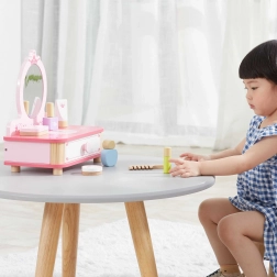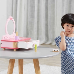 Coiffeuse rose au design élégant, incluant un matériau en bois de qualité et des peintures non toxiques assurant la sécurité des enfants.