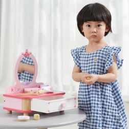 La belle coiffeuse rose de la marque Viga est un complément idéal pour chaque chambre d'enfant. L'ensemble comprend un miroir, un tiroir coulissant, et divers accessoires en bois pour créer un monde magique plein de fantaisie. Fabriqué en bois de qualité et peint avec des couleurs non toxiques sûres pour les enfants.