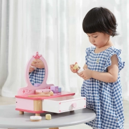 Le set inclut des accessoires en bois tels que des rouges à lèvres, des parfums et des fards à paupières pour créer des scénarios de jeu infinis.