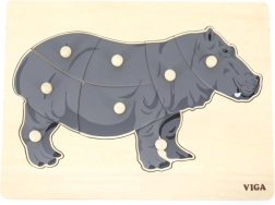 Découvrez le puzzle d’insertion Montessori en bois VIGA sur le thème de l’hippopotame, qui stimule la motricité fine, la coordination œil–main et les premiers apprentissages des formes. Grâce aux poignées sur les pièces, il est facile à manipuler même pour les plus petits ; la planche robuste mesure 30 × 22,5 × 1 cm et convient dès 18 mois.