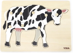 Les enfants s’exercent à reconnaître les formes et à nommer les animaux. Le motif noir et blanc contrasté de la vache favorise la concentration et une meilleure orientation.