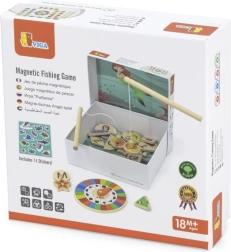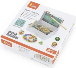 Le coffret comprend 2 cannes magnétiques, 26 poissons colorés et une roue rotative qui indique la couleur ou la forme de la prise. Parfait pour jouer seul ou en duel à deux joueurs.