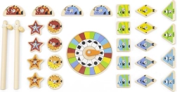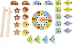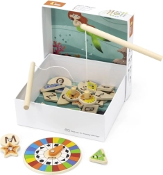Ce jeu de pêche magnétique en bois transforme l’apprentissage en amusement. À l’aide de deux cannes, les enfants attrapent de petits poissons colorés aimantés et, selon la roue rotative, choisissent la bonne couleur ou la bonne forme. Au dos de chaque poisson se trouve une lettre de l’alphabet, permettant d’exercer aussi les premières compétences de prélecture pendant le jeu.