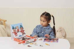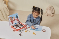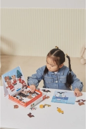 Ce coffret créatif propose un habillage magnétique en bois plébiscité, sur le thème de la famille d’ours. Les enfants peuvent créer diverses tenues et expressions, explorer des métiers ou des scènes du quotidien et inventer leurs propres histoires. Les 54 pièces magnétiques offrent de nombreuses combinaisons pour des heures de jeu.