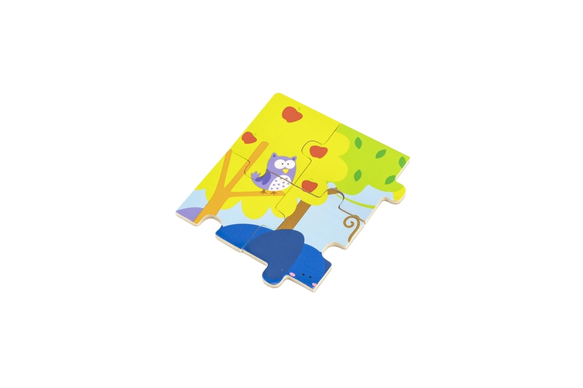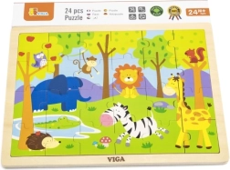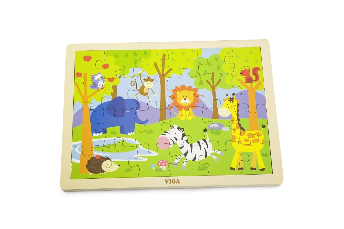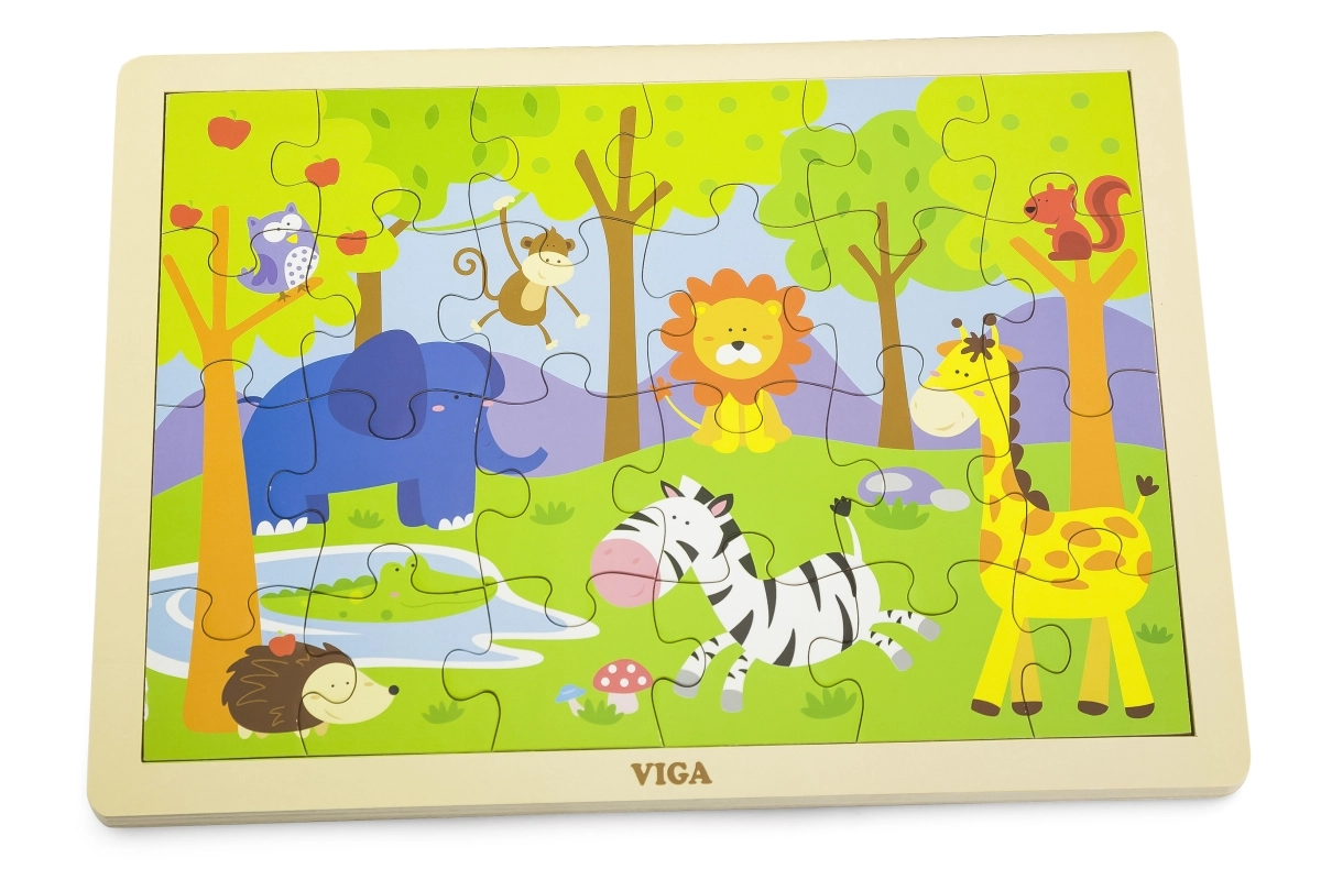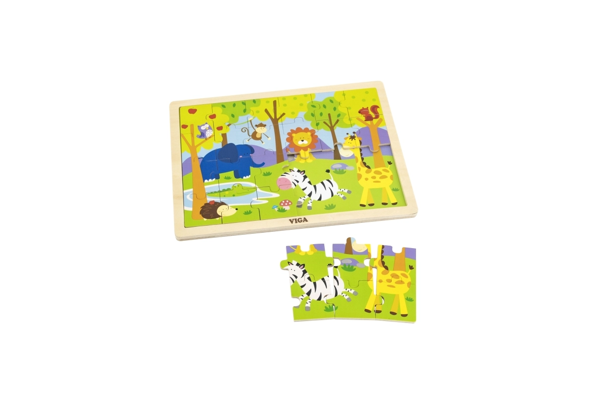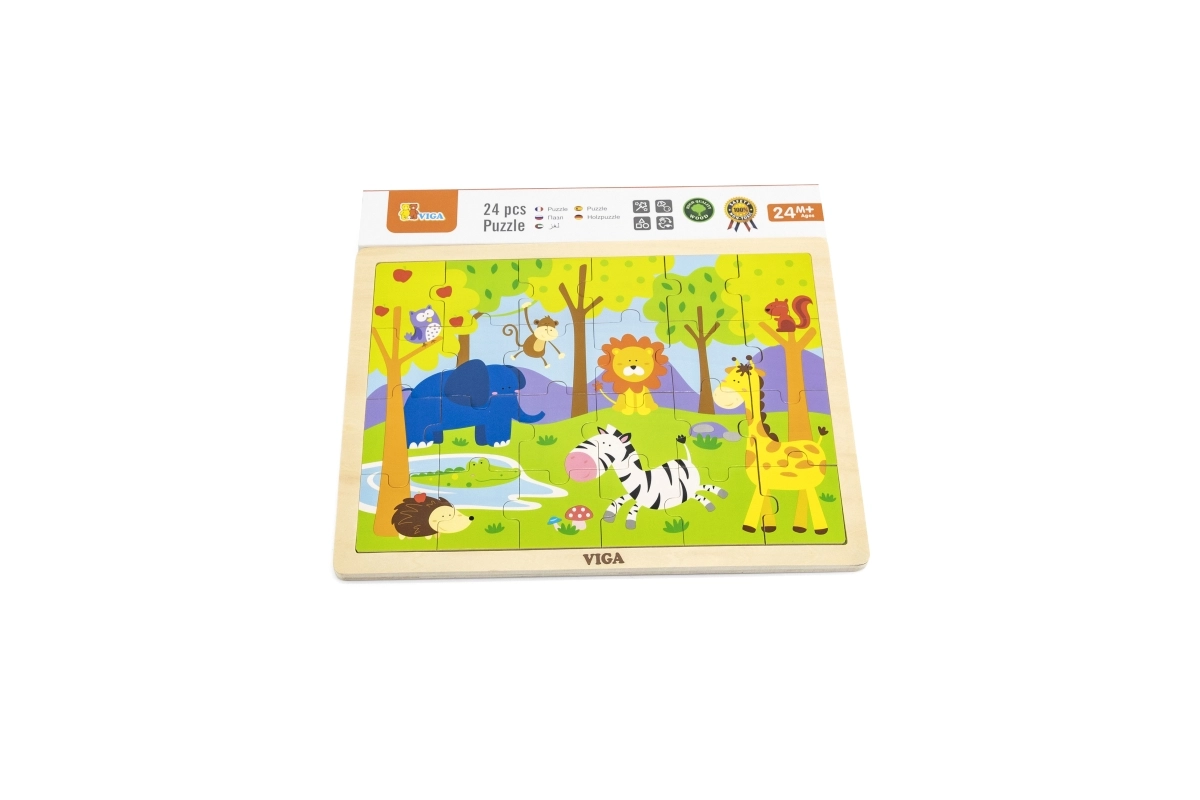 Puzzle en bois avec une image de zoo. Au total 24 pièces. Dimensions de l’image env. 27,5 × 20 cm. Dimensions de l’emballage env. 30 × 27 × 1 cm. Âge 24 mois et plus.
