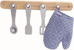 Le coffret comprend une casserole avec couvercle, une poêle, une manique et des ustensiles à suspendre – les enfants peuvent commencer à « cuisiner » dès le déballage.