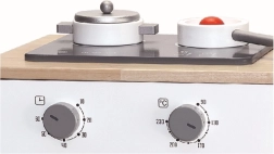 Deux plaques, des boutons rotatifs et un four avec porte transparente motivent les enfants à jouer de manière créative et stimulent leur imagination.
