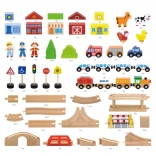 Le set complet comprend des rails, un pont, des barrières, 2 trains, des véhicules, des personnages et des animaux – tout pour créer une ville vivante et des paysages naturels.