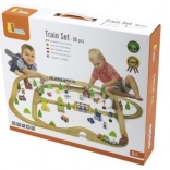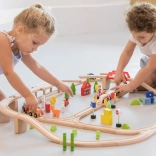 Ce circuit de train en bois complet offre aux enfants tout ce dont ils ont besoin pour bâtir leur petit monde. Grâce aux 90 pièces, les petits constructeurs peuvent combiner différentes formes de rails, des ponts et des intersections, ajouter des véhicules, des figurines et des éléments naturels. Le bois naturel associé à des couleurs vives confère un style intemporel et stimule les sens.