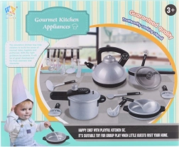 Ce set de vaisselle de cuisine est le jouet idéal pour les enfants qui adorent les activités culinaires. Il contient une bouilloire, une casserole, un autocuiseur, une poêle et d'autres accessoires qui stimuleront leur imagination et amélioreront leur motricité fine.
