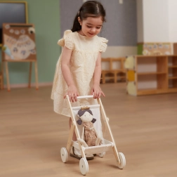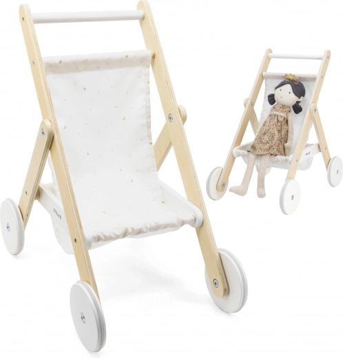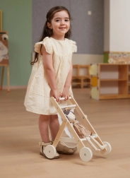 Offrez aux enfants un jeu d’imitation réaliste avec cette élégante poussette en bois pour poupées. Elle combine un design intemporel, des matériaux de qualité et une finition sûre, pour que chaque « sortie » avec la poupée soit confortable et silencieuse. Les bandages en caoutchouc sur les roues réduisent le bruit sur le sol et améliorent la stabilité lors des premiers pas.