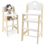 Cette chaise au style soigné, mêlant bois naturel et blanc, est un excellent accessoire pour tous les petits soigneurs. Les enfants peuvent « nourrir » leurs poupées en tout confort, en prendre soin et développer leur imagination ainsi que leurs compétences sociales. La chaise est conçue pour des poupées jusqu’à 38 cm et convient dès 3 ans.