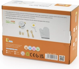 Un élégant set de cuisine en bois de VIGA, idéal pour le jeu de cuisine et le développement de l’imagination, de la créativité et de la motricité fine. Il comprend une casserole avec couvercle, une poêle avec œuf au plat, une salère et poivrière, une spatule, une cuillère et une manique de cuisine. Fabriqué en bois de qualité et peint avec des peintures non toxiques – un jeu sûr pour les enfants dès 3 ans.