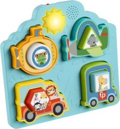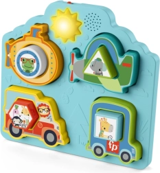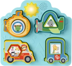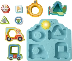 L’insertion correcte d’une pièce récompense l’enfant par des sons réalistes de véhicules et d’animaux. Le bouton soleil ajoute d’autres effets et stimule la curiosité.