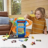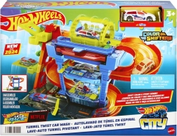 La station de lavage Hot Wheels City Color Shifters avec tunnel rotatif apporte une action riche en changements de couleurs et en éléments interactifs. Les enfants peuvent hisser leur voiture avec l’ascenseur manuel jusqu’à l’étage supérieur et voir son apparence changer instantanément dans l’eau chaude. Ensuite, ils dévalent la rampe en passant par le rouleau moussant et peaufinent les détails lors de la phase de “detailing”.
