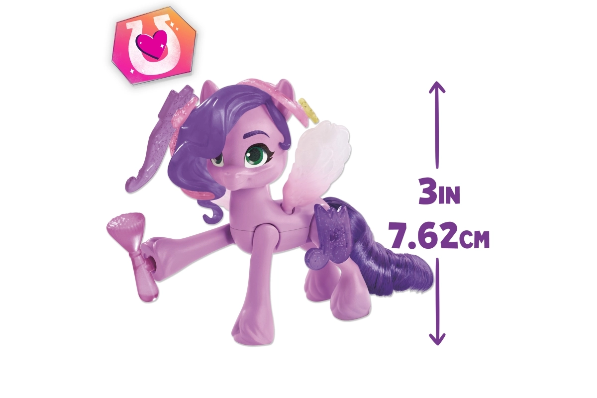 Pipp Petals est une princesse pop élégante et talentueuse, inspirée par le film My Little Pony : Nouvelle génération et la série My Little Pony : Make Your Mark. Comprend une figurine de poney Pipp Petals de 3 pouces, articulée, avec crinière en plastique et queue souple. Âge 5+