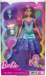 La poupée BARBIE Malibu Roberts offre des aventures féeriques inspirées de la série Une touche de magie. Elle brille dans une robe superposée avec une jupe en tulle scintillante parsemée d’étoiles, des accents d’ailes au niveau de l’encolure et des manchettes brillantes qui complètent son style de fée.