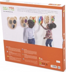 L’accent est mis sur la sécurité et la qualité : le produit est en bois verni résistant et peint avec des couleurs non toxiques et vives. Le jeu développe naturellement la motricité fine, les capacités de coordination, la pensée logique et aide à la reconnaissance des couleurs. Une série complète de tableaux muraux en forme d’ourson aux fonctions variées est disponible – idéale pour un coin sensoriel modulaire.