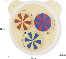 Le tableau en bois à la mignonne tête d’ourson transforme tout coin enfant en espace de jeu créatif. Les trois roues colorées se tournent facilement et offrent d’impressionnants effets optiques qui captivent les enfants et les encouragent à explorer davantage. Parfait pour la chambre d’enfant, les maternelles et les aires de jeu.