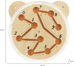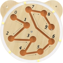 Ce panneau mural éducatif Viga en forme de tête d’ourson allie jeu et apprentissage. En tournant la plaque, vous guidez une bille en acier dans des rainures afin d’atteindre successivement chaque chiffre de 0 à 9. Les enfants exercent naturellement le comptage, la patience et la résolution de problèmes.