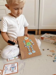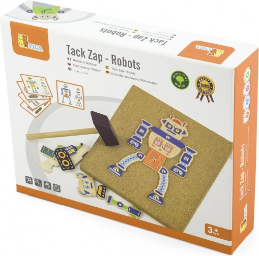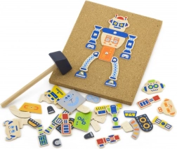 Découvrez un jeu amusant et éducatif pour petits constructeurs – un panneau à clouer en bois VIGA sur le thème des robots. Le set comprend 45 pièces en bois colorées, une planche en liège, un marteau en bois, des punaises et des cartes modèles. Les enfants développent leur motricité fine, leur raisonnement logique, leur concentration et leur créativité en fixant les formes sur la planche selon leur imagination ou d’après les modèles.