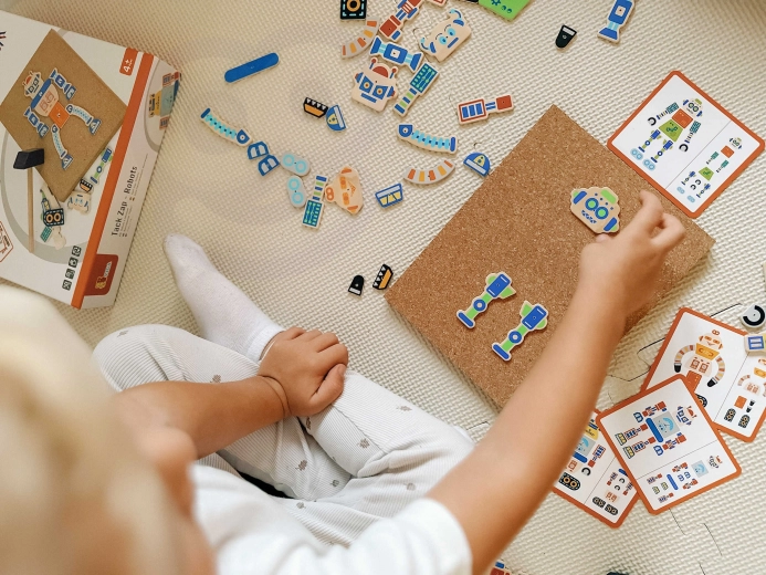Le set comprend des cartes d’instructions avec 10 propositions de robots, qui aident à reconnaître les formes, à améliorer la coordination œil–main et la patience. Les enfants peuvent créer selon les modèles ou en toute liberté, ce qui stimule la pensée créative et l’autonomie.