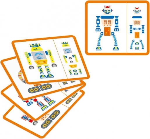Les cartes avec 10 modèles aident à démarrer, mais le vrai plaisir vient de la création libre. Les enfants composent leurs propres robots et entraînent imagination et planification.