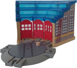 Grand dépôt offrant un abri et un point d’appui à trois locomotives ou wagons. La chaleur et le calme qu’on y trouve leur donnent l’énergie nécessaire pour de longs trajets à travers le réseau ferroviaire. Le toit à deux niveaux vous offre un accès parfait à toutes les locomotives garées, qu’il faut réparer, simplement nettoyer et préparer pour le prochain voyage. Ce dépôt possède sa propre plaque tournante, offrant un grand confort pour l’entrée, la rotation des wagonnets et des locomotives. Contenu : dépôt et plaque tournante. Dimensions du dépôt, plaque tournante incluse : 34 × 34 cm, hauteur 18 cm, diamètre de la plaque tournante 18 cm. Dimensions de l’emballage : 31 × 21 × 20 cm. Les circuits et accessoires en bois Maxim sont compatibles avec tous les autres circuits ferroviaires en bois du marché. Pour enfants à partir de 3 ans.