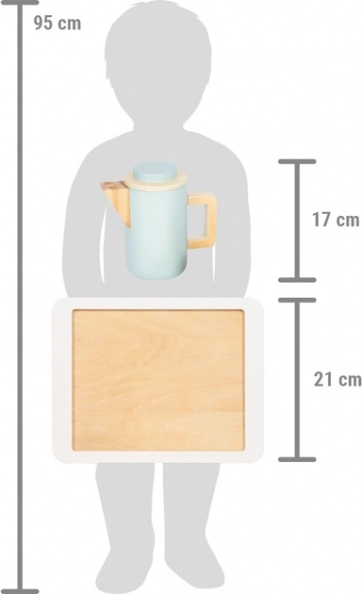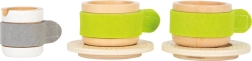Découvrez la joie de préparer le thé et le café avec notre set de jeu. Magnifiquement travaillé en bois, il regorge de détails qui stimulent l’imagination. Le set comprend deux tasses avec soucoupes, deux petites cuillères, un sucrier, un pot à lait et une grande cafetière ou théière avec des couvercles amovibles qui renforcent le réalisme du jeu.