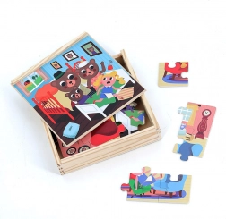Ce coffret comprend 4 illustrations de l’histoire de Raiponce, chacune composée de 9 pièces solides. Les enfants exercent leur concentration, mémoire et patience tout en profitant de superbes illustrations colorées au style rétro signées Ingela P. Arrhenius. Grâce à la conception en bois, les puzzles sont durables et adaptés aux petites mains.