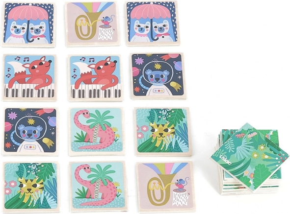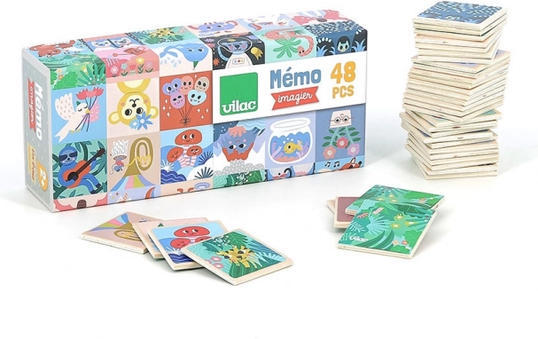 Le memory en bois de Vilac est idéal pour les enfants qui aiment les illustrations colorées et les jeux amusants. Ces cartes de jeu, parfaitement adaptées aux petites mains des enfants, aident à développer le vocabulaire, la mémoire et le sens de l'observation.