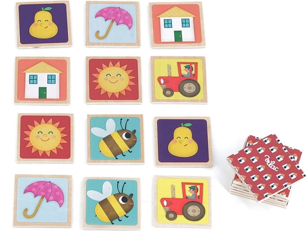 Découvrez la beauté du pexeso en bois original avec le thème des animaux de la ferme. Ce pexeso offre 48 pièces de jeu en bois, adaptées en taille pour les petites mains des enfants, fabriquées en bois durable et recouvertes d'une impression de qualité.