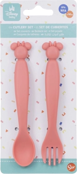 Set de deux couverts en plastique pour enfants avec extrémité en forme de Minnie.