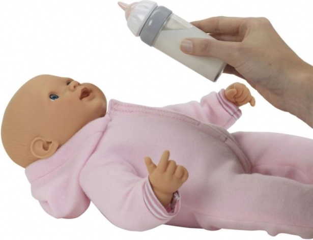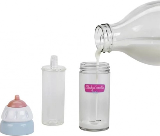 Le biberon est conçu pour que le lait disparaisse dès que votre poupée commence à "boire" et réapparaisse lorsque le biberon est remis debout.